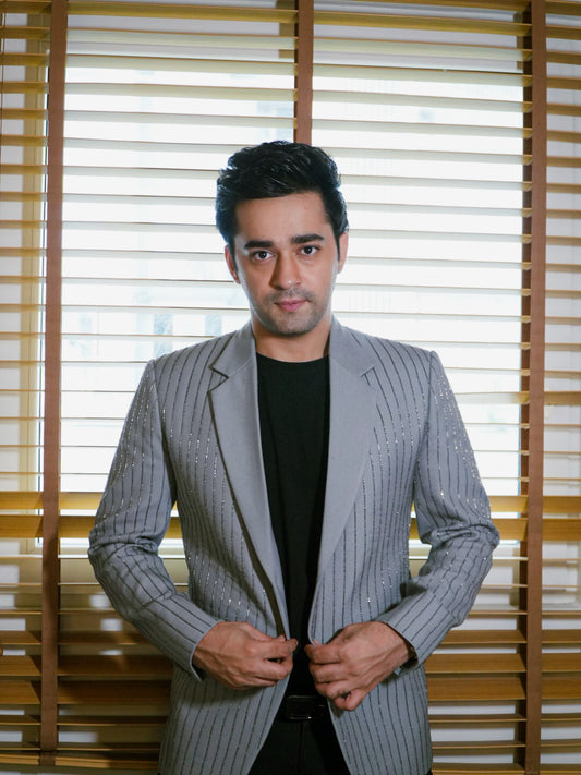 Grey Hand Embellished Linear Blazer